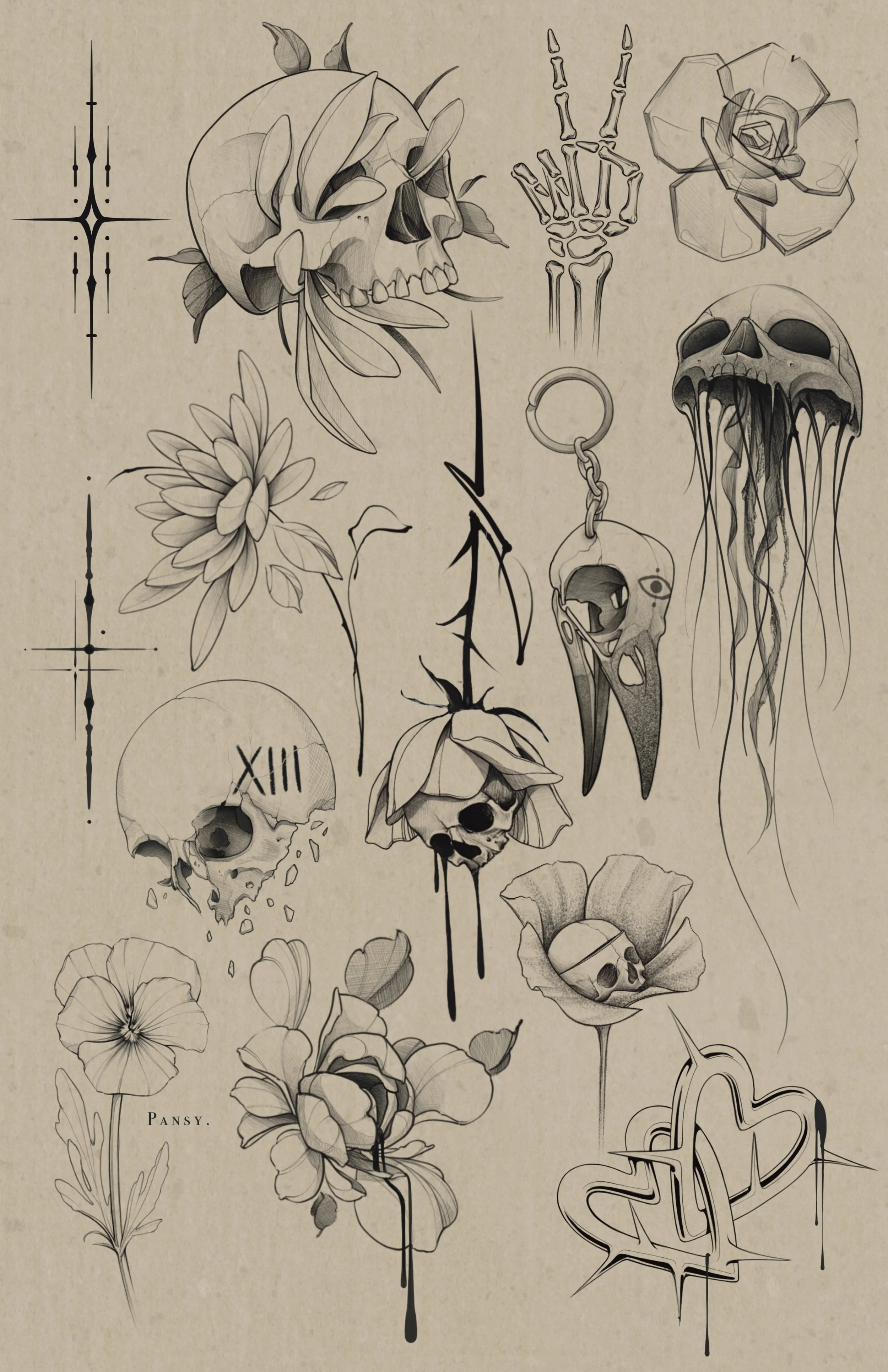 Tattoos designs vary in size and detail so charges are based solely according to time taken for the actual tattoo. (For eg., if the tattoo takes 10 minutes, it will be $200.) Please do not copy.